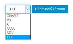 - Vyberte ve formuláři TXT záznam a klikněte na tlačítko Přidat nový záznam.