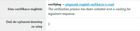 Je proto nutné postupovat dle instrukcí, které dorazí od registrátora (General Registry) na kontaktní e-mail vlastníka domény, jinak bude ze strany registrátora provoz domény pozastaven.